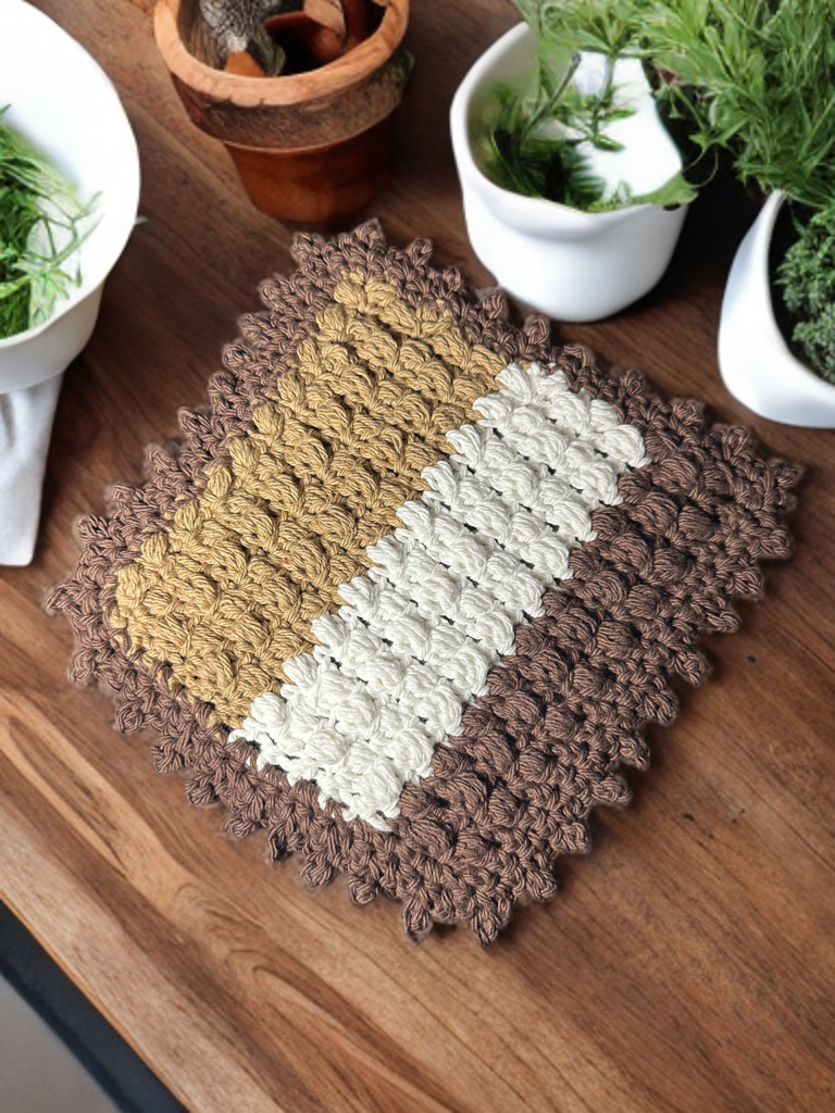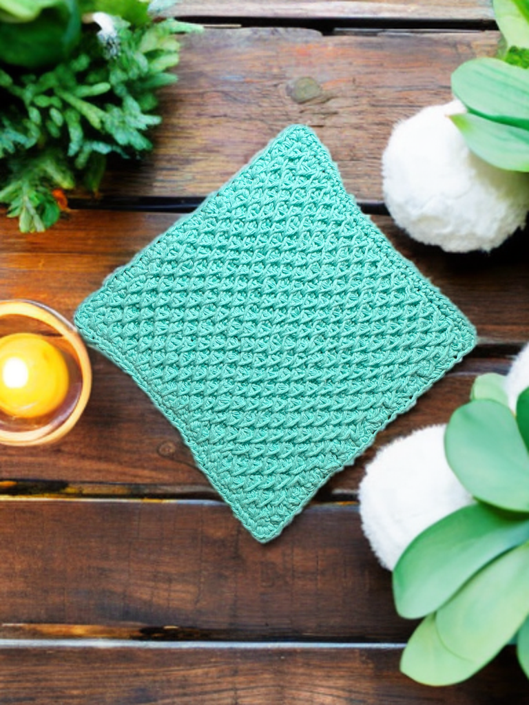 Handmade with 100% cotton, this crocheted cleaning cloth is both stylish and functional. Featuring the lemon peel stitch, it has a beautifully textured surface that enhances scrubbing power while remaining soft and absorbent—perfect for washing dishes, wiping counters, or general cleaning.