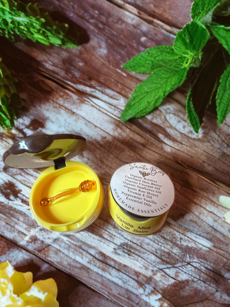Indulge your lips with our Vanilla Mint Lip Balm, a refreshing treat packed with nourishing, all-natural ingredients. Made from unrefined shea butter, organic coconut oil, cold-pressed organic sunflower oil, organic honey, and enriched with vitamin E, this balm delivers deep hydration and a silky-smooth finish. Infused with vanilla essential oil and peppermint essential oil, it offers a cool, invigorating blend of sweet and minty freshness, making it as delightful to use as it is moisturizing. Packaged in an adorable honey pot container with an applicator stick for easy, mess-free application, it’s the perfect blend of charm and care for your lips!