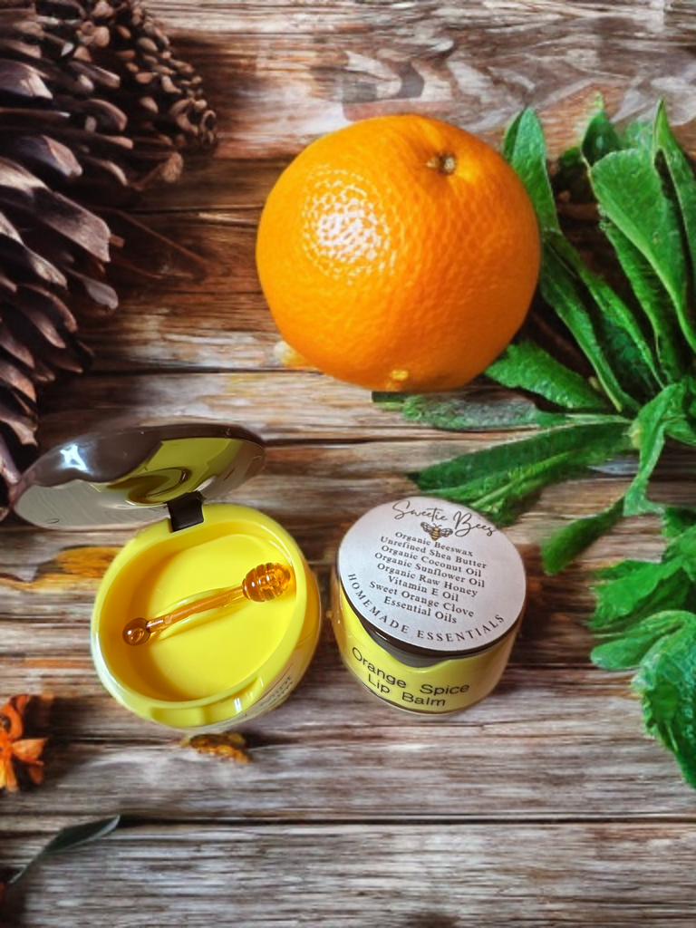 Nourish your lips with the warm, citrusy goodness of our Orange Spice Lip Balm, handcrafted with natural and pure ingredients. Infused with sweet orange and clove essential oils, this balm delivers a refreshing burst of citrus with a hint of cozy spice. Made with moisturizing butters, oils, and raw honey, it keeps your lips soft, smooth, and hydrated all day long.